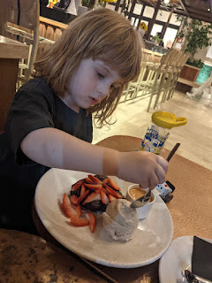 On Tuesday Remy and Mom went into town to explore while Dad was at work. They found lots of little shops that we hadn't seen on our previous visits to town, likely due to being there primarily in the evening. They found a bakery with lots of breads and pastries, a fresh squeezed juice and smoothie stand, and several good spots for art. Remy was so well liked by the shop keepers that he ended up getting a free wooden truck and a free turtle key chain. We are going to have to start sending him into the coffee shops ahead of us to see if he comes out with free coffee.