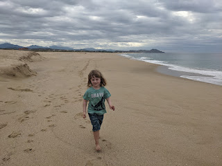 Today was the first day where the sky was overcast, and we took advantage of it. The walk to the lagoon was about three hours total, and we took plenty of stops to water everyone. Walking in the sand is much slower than walking on the road, especially in the sand here. At previous beaches we've been to like Loreto and Bahia de Los Angeles, the sand has very pretty fine. Here the sand is both very coarse and very deep. There isn't really anywhere on the beach where the sand compacts to make for good walking.