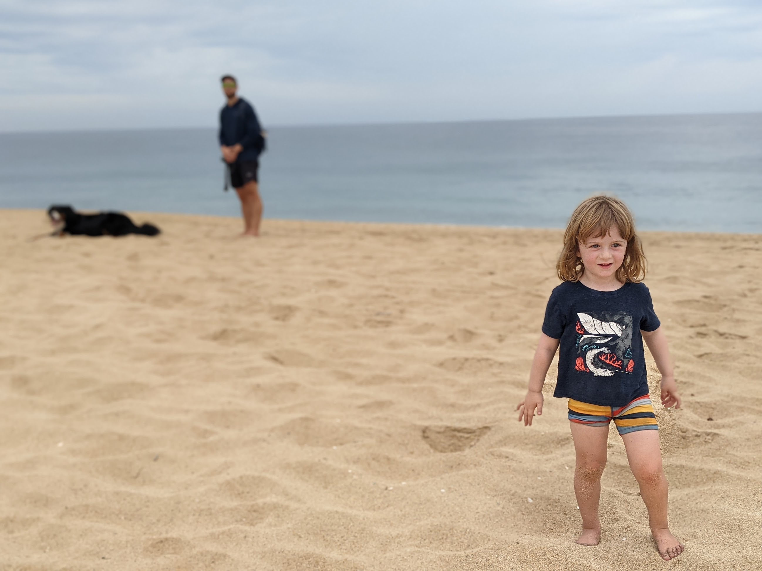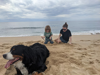 In addition to being coarse, the sand is also sticky. I'm sure that we will be finding grains of sand in Remy's ears, nose, butt, and hair until he's five years old. We've tried washing it off with the hose and in the shower. We've tried brushing it with a broom, a towel, and a sock. Nothing gets it all the way off. Wet or dry it is going to find a place to stick. Here is what Remy looks like after a typical trip to the beach.
