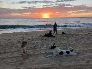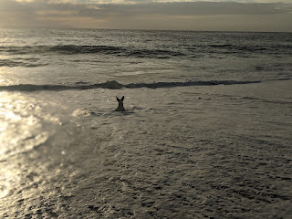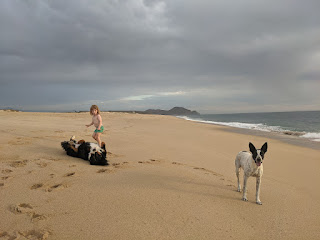 Louie doesn't always like to play on the beach, but when Pinto and Tigre come along they can really start churning up the sand. Pinto and Tigre are both very fast and used to running on the sand. Louie on the other hand...looks like a shaggy rug chasing after them.