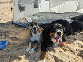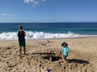 We dug a really big hole. Louie enjoyed the nice cool sand.