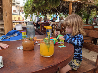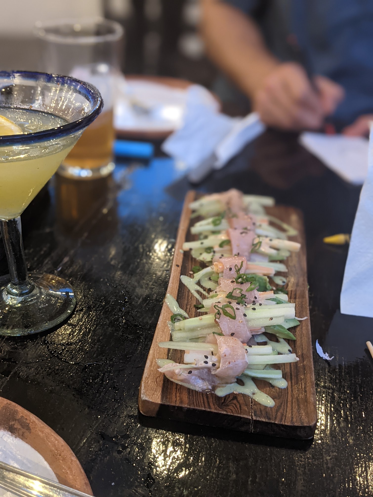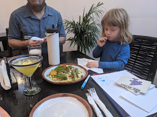 For lunch we stayed at Cerritos and went to check out the Barracuda cantina. They are famous for their cocktails, so we got cocktails. They utilize a lot of local fruits, spices, and flavors in their drinks, and the two we tried were very good. We might have stuck around for a few more if we didn't have our waffle-filled baggage and our furry baggage.