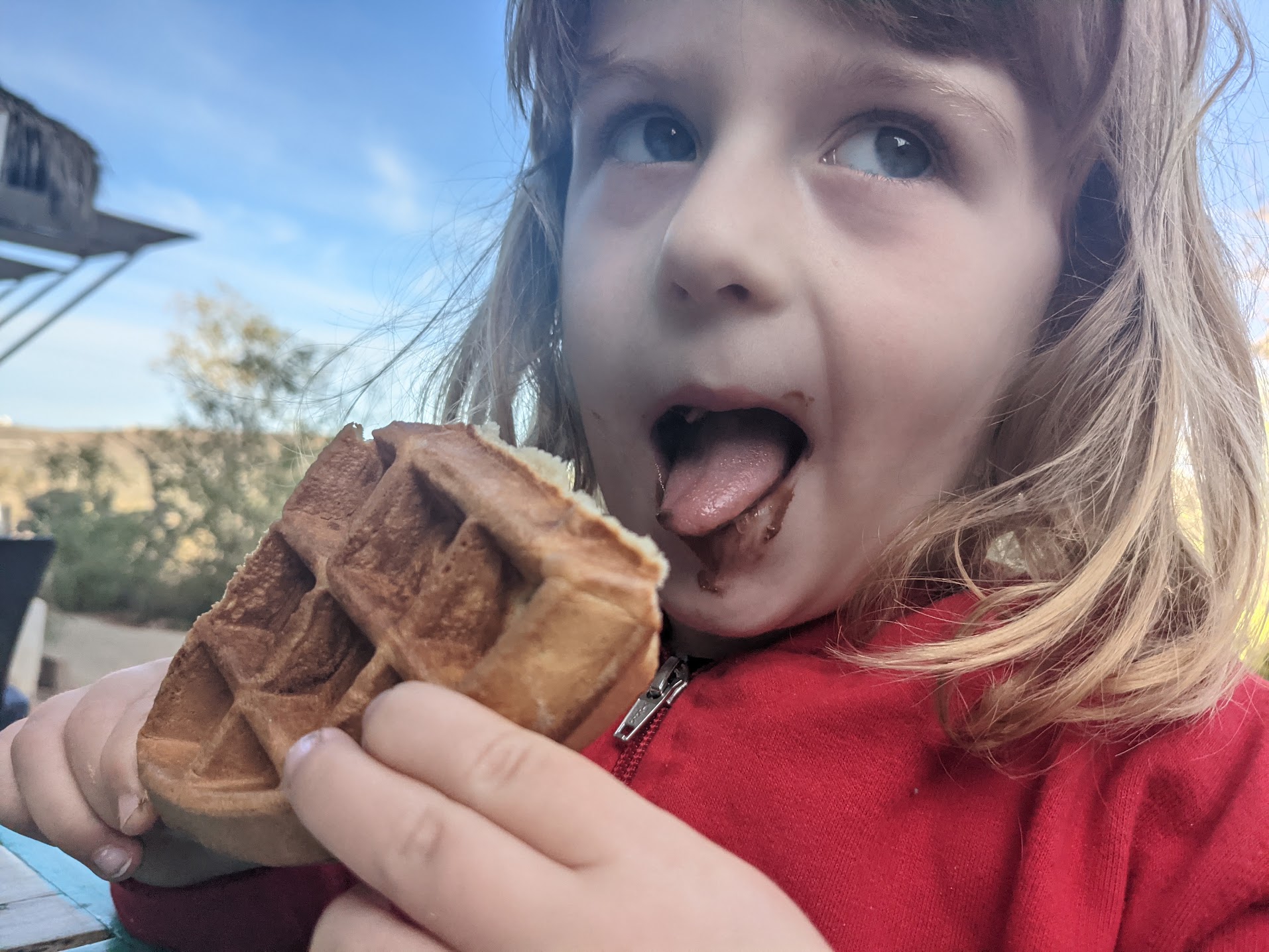 After a strenuous walk like that there's only one thing a body needs. More waffles.