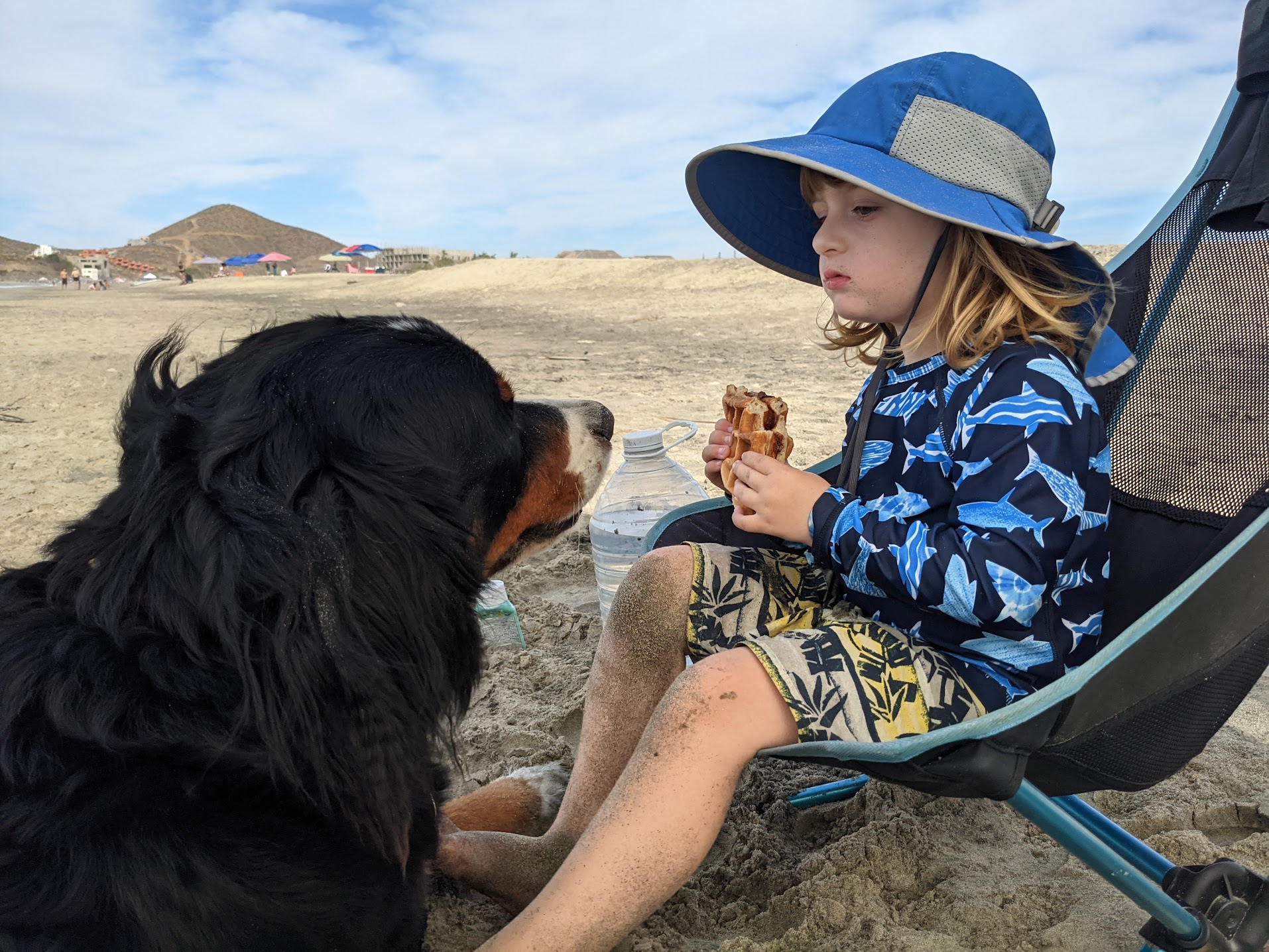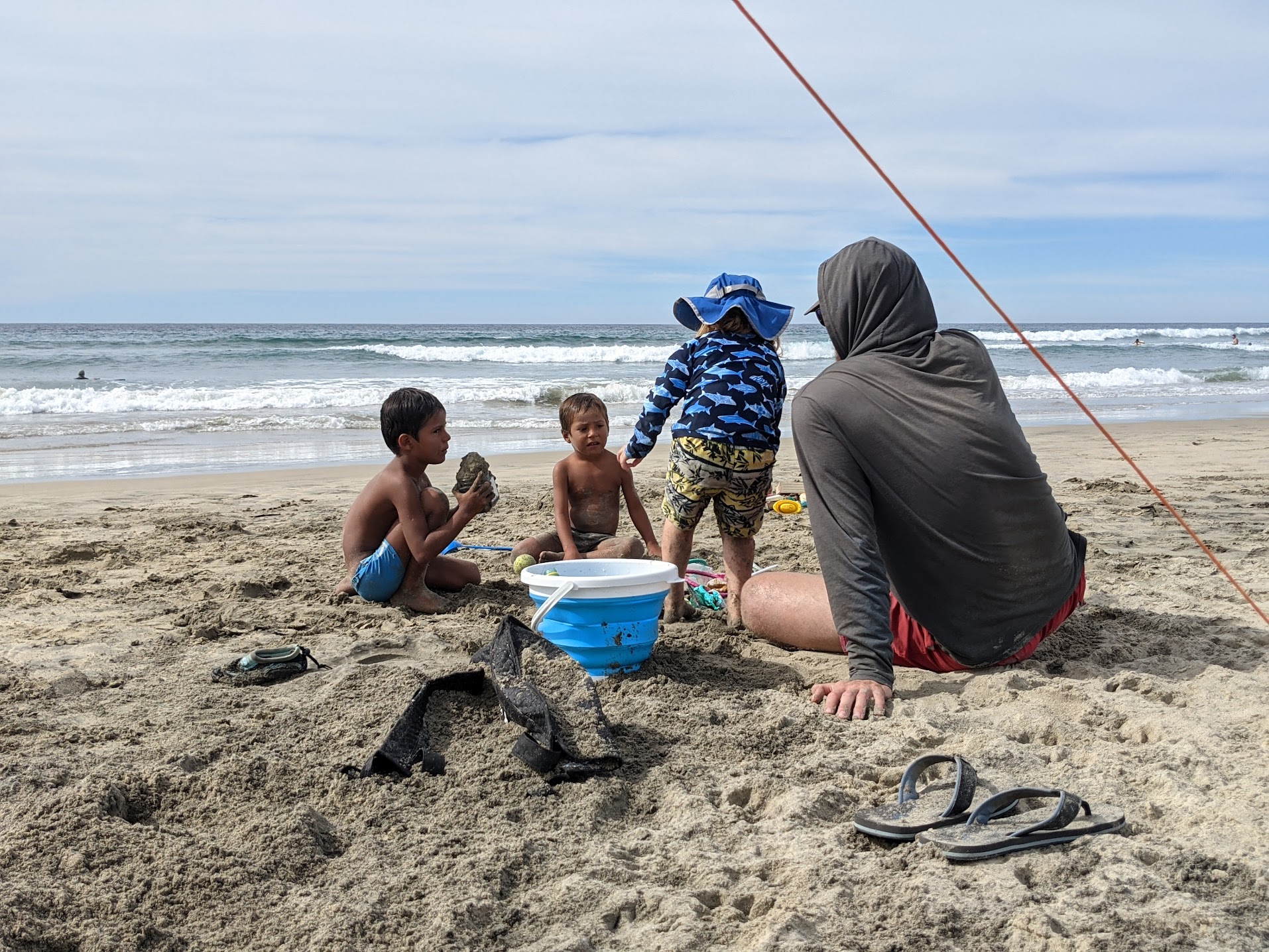 Remy made some new friends on the beach. The boys were very fond of his collection of beach toys.