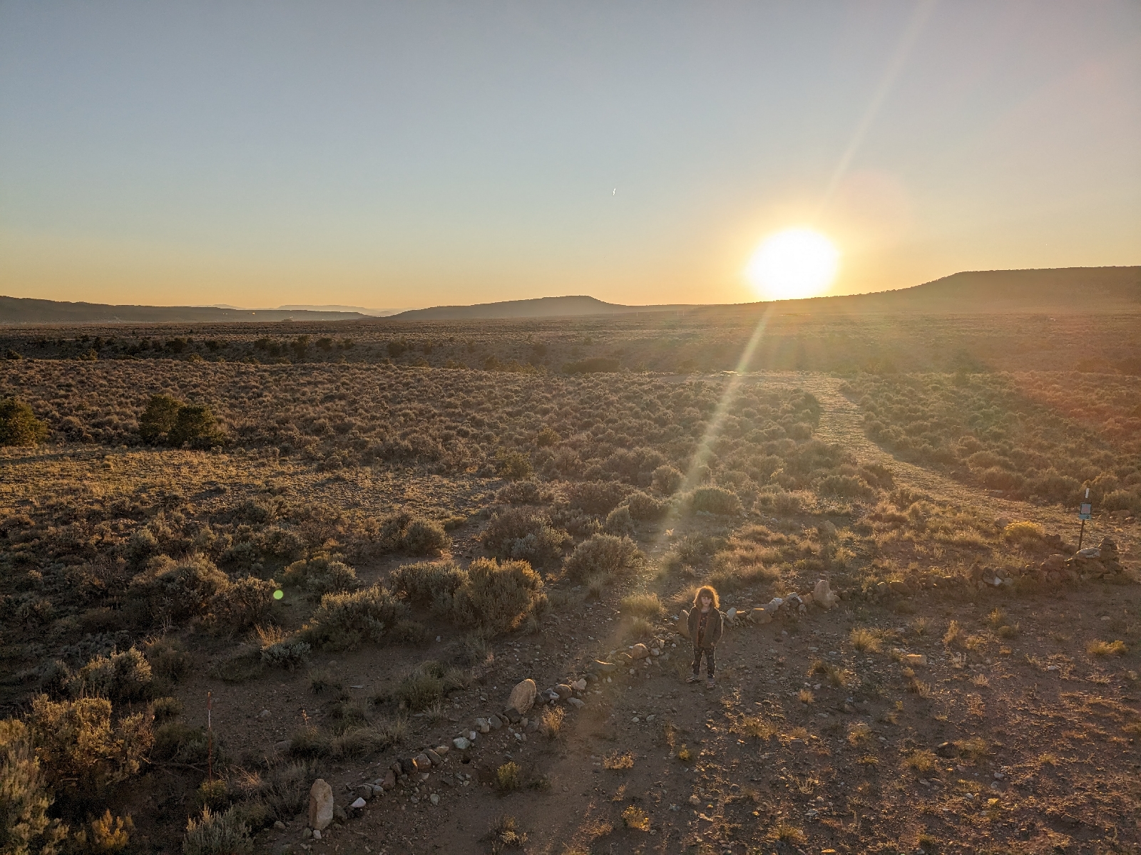 The temps while we were driving peaked at 91, but luckily things cooled off quite a bit as the evening wore on. It is hard to tell at the moment if the temperature dropping was related to driving into a different climate or to the later hour. We will find out tomorrow.  Our hip camp for the night is a bit in the middle of nowhere, but it is a very pretty nowhere. We are back into some desert scrubland with lots of little shaggy vegetation and not so many big rocks and boulders. Just before we turned off the road we drove through more alpine forests. Dad can't keep up with all these different biomes.